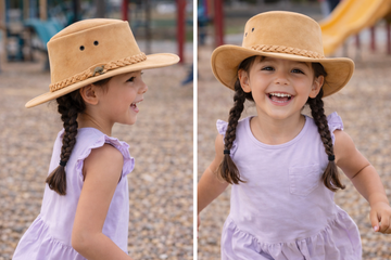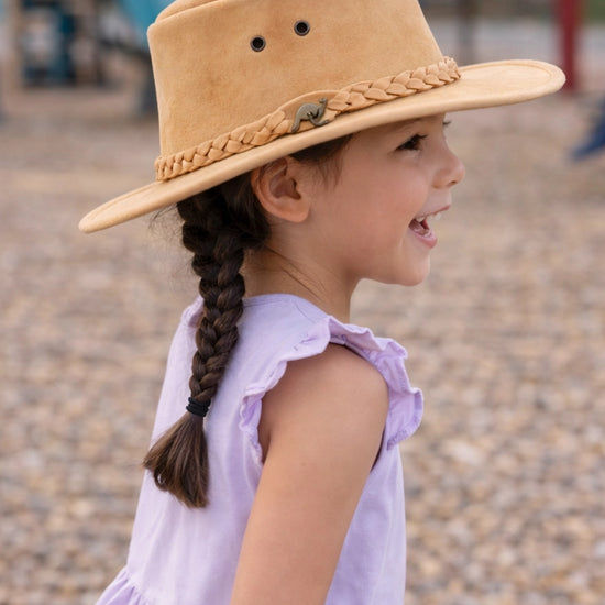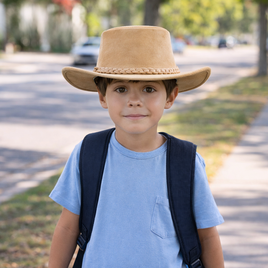 Kinder Cowboy Lederhut – Allwetter Outdoor-Hut mit UPF 50+ (Größe 53–54 cm)