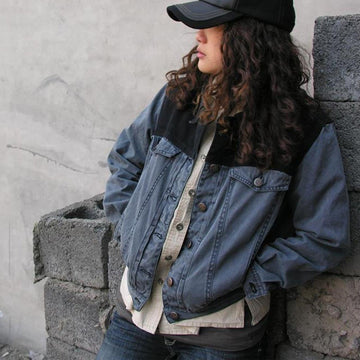 Damen Jeansjacke- kastig geschnitten mit farbiger Brustpartie, Größe M & L