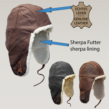 Flieger Cap Wintermütze- Gefütterte Pilotenmütze aus echtem Leder