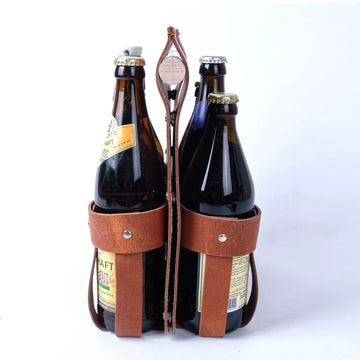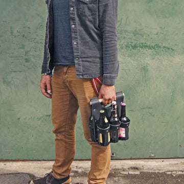 Flaschencaddy aus Echtleder für 6 Flaschen
