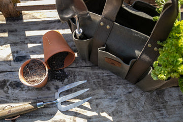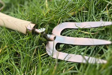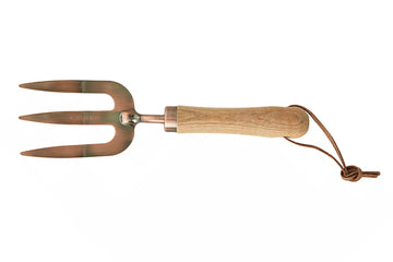 Kupferne Gartengabel mit ergonomischem Holzgriff