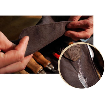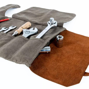 Werkzeugrolle aus wasserfestem Canvas und Leder in khaki und charcoal