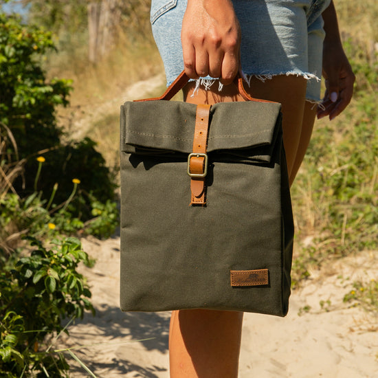 Lunchbag – isolierte Vintage-Lunch-Tasche aus gewachstem Canvas & Leder