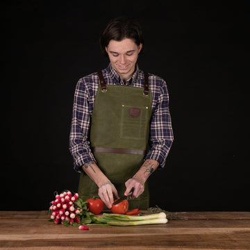 Schürze No. 281 aus gewachstem Canvas & Leder mit Taschen