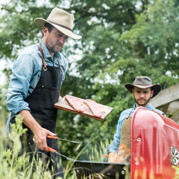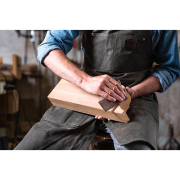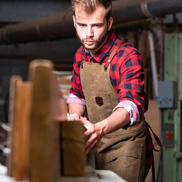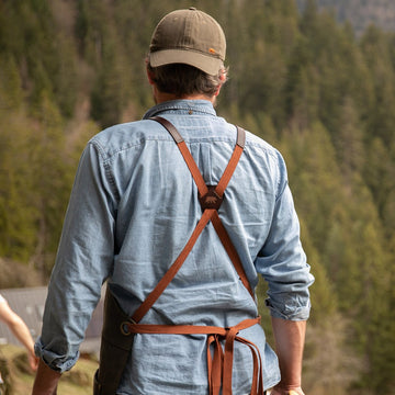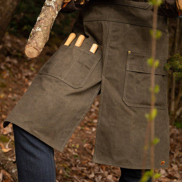 Schürze No. 690 aus gewachstem Canvas & echtem Leder mit Vorderschlitz für maximale Bewegungsfreiheit