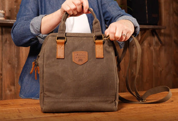 Walker- kleine Kühltasche aus gewachstem Canvas und Leder mit abnehmbarem Schultergurt