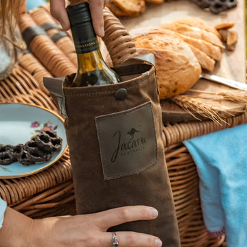 Weinkühler für zwei Flaschen aus wasserfestem Ölzeug gefertigt