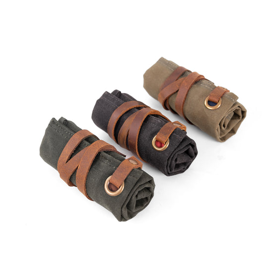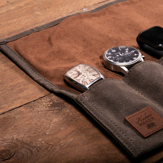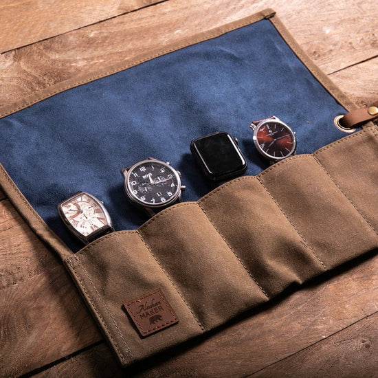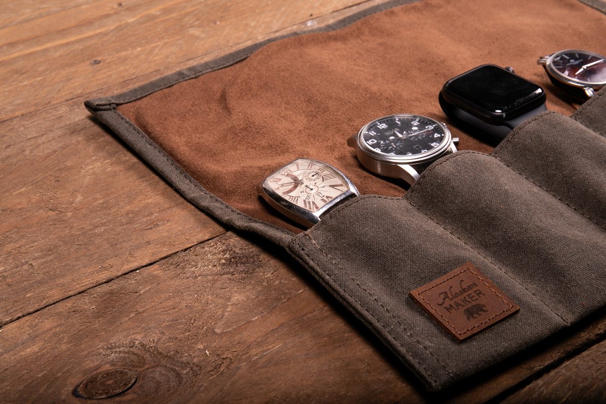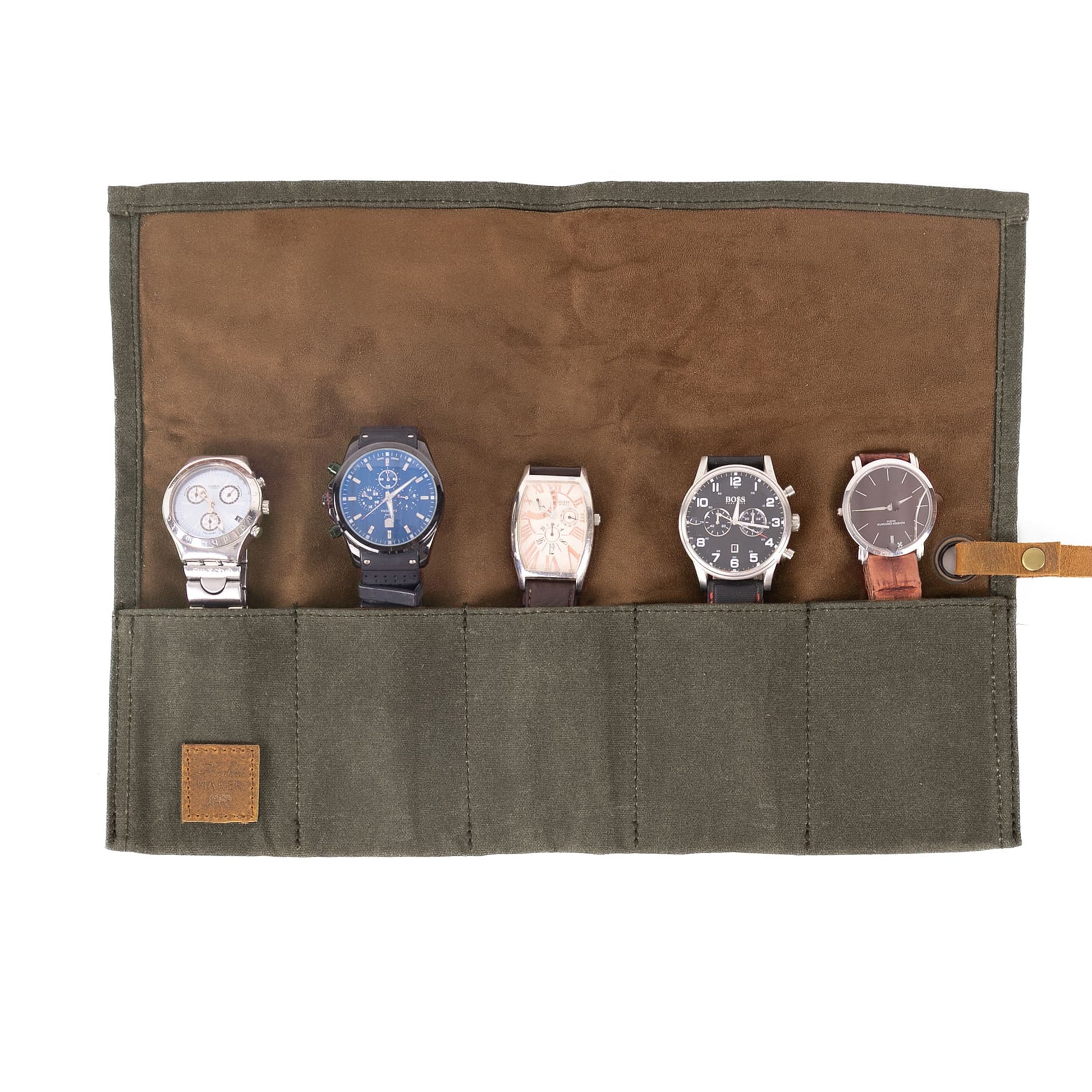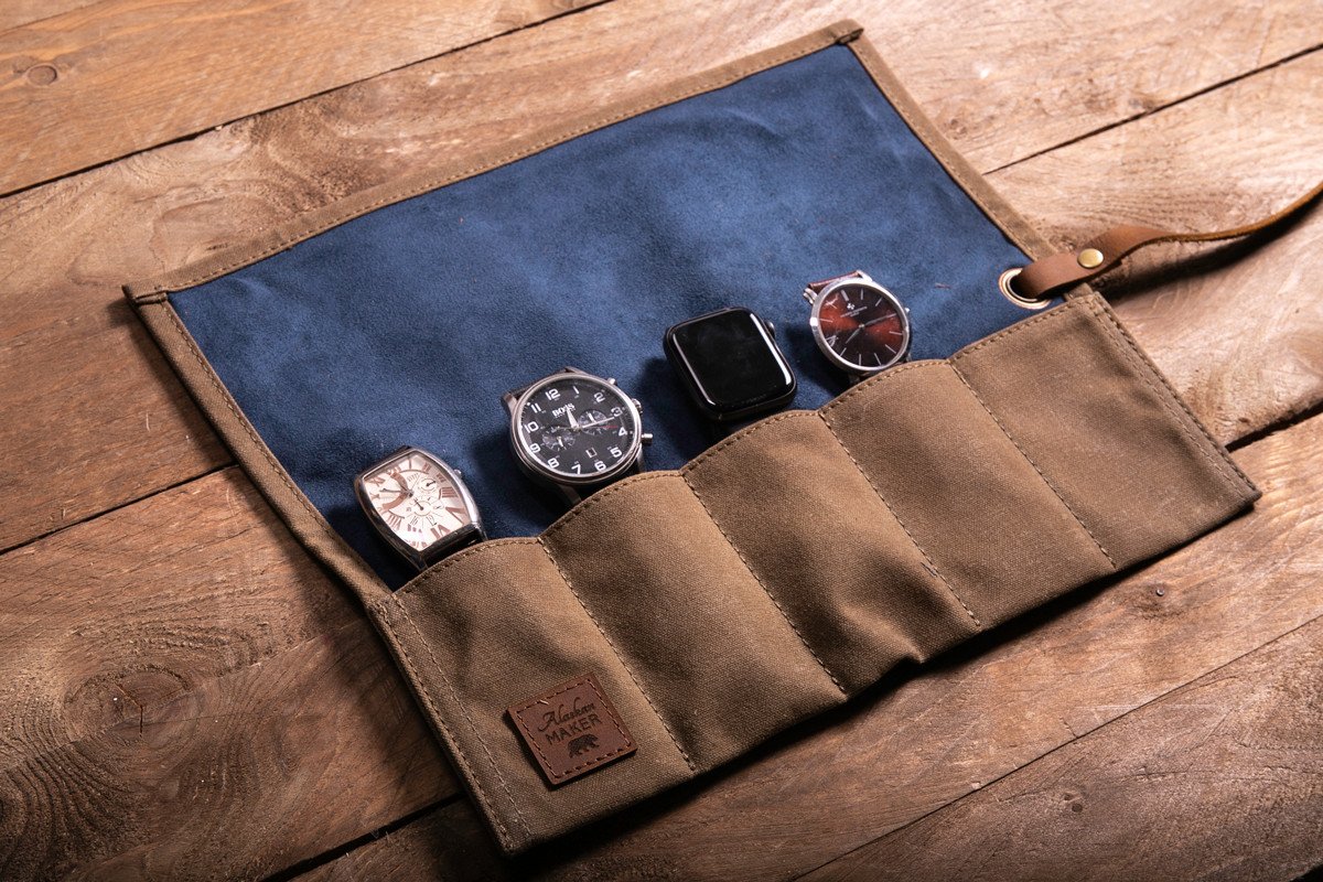 Aufbewahrung für Uhren- Reiserolle aus Canvas und Leder